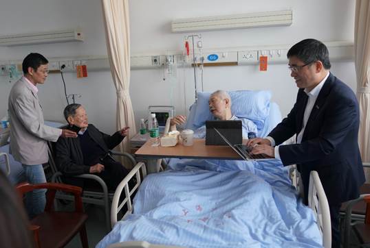 10月17日,世界著名物理学家杨振宁在校党委书记童世骏的陪同下,看望了我院正在住院的张奠宙先生。我院谈胜利院长,学校办公室副主任赵庆,我院办公室主任、工会主席袁富荣一起陪同看望了张先生。