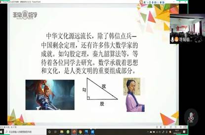 通过每周一次的云端授课,每学期一到两次的线下课程和实践课程,体验数学文化的魅力,激发数学学习的兴趣,2020年7月以来,成人视频 组建了40余人的非常数学志愿者服务队,对接云南省寻甸县金所街道119希望小学,开展成人视频 寻甸县中小幼素质教育帮扶试点学校——数学素养提升项目,旨在依托专业所学,逐步探索出以提升孩子们数学素养和思维能力为核心的教育帮扶模式,形成示范,提升寻甸基础教育质量,助力寻甸教育振兴。截至目前,项目已经成功开展了“有趣的一笔画问题”、“从趣味数学谈时间管理”和“趣味数学——韩信点兵”等七个专题的线上课程教学,以及以“数独”为专题的线下课程教学。