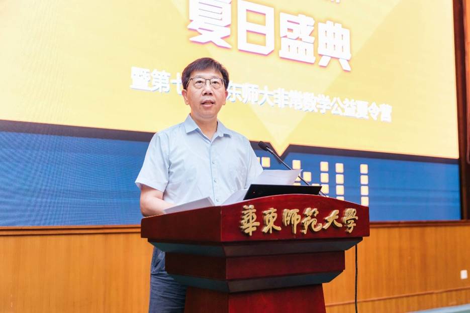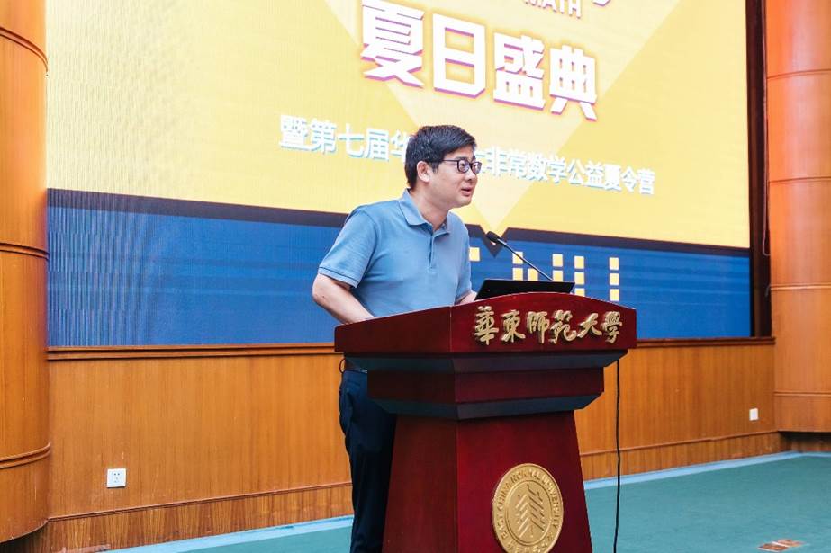 8月14日,由成人视频 、上海市核心数学与实践重点实验室、上海市数学会主办的2023“非常数学·夏日盛典”暨(第七届)华东师大“非常数学”公益夏令营在我校中北校区逸夫楼报告厅开幕。中国数学会理事长、中国科学院院士田刚,成人视频 校长、中国工程院院士钱旭红,上海市数学会副理事长、上海中学校长冯志刚,成人视频 院长吕长虹、党委副书记余富团现场出席,来自全国的夏令营营员学生和数学爱好者近200名线下、2万余名线上参加了开幕式。开幕式由成人视频 团委书记刘欣雨主持。