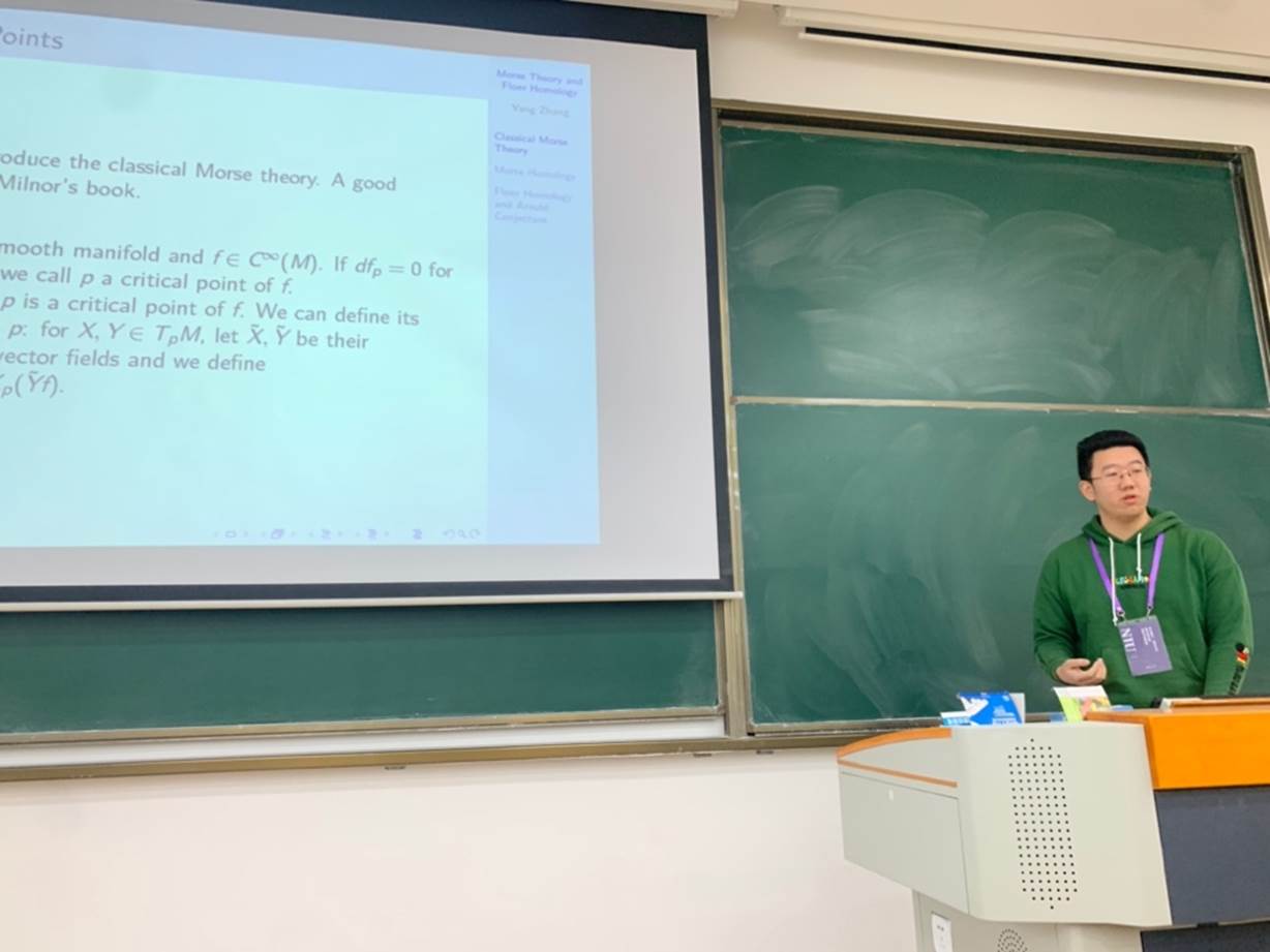 最后,我院2020级强基拔尖班张洋同学做了题为“Morse theory and Floer Homology”的报告,南京大学2021级数学拔尖班唐晨皓同学报告内容为“L-函数和Langlands对应”。
