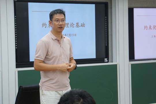 肖义彬教授为大家讲授了不确定环境下航空/航运港口投资问题。肖老师首先介绍了约束优化理论的基础,然后介绍了不确定环境下航空机场的投资问题以及航运港口防御自然灾害的最优投资问题。