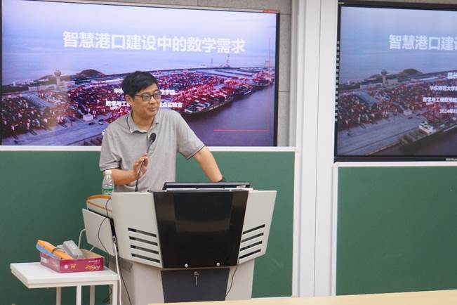吕长虹教授讲授了智慧港口建设中的数学需求。他首先介绍了我国港口发展的历史,码头自动化的背景和现状,然后重点讲解了智慧港口建设中如预翻箱问题、泊位分配问题、自动牵引车路径规划等。