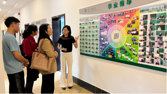 会后,丽江师专数学与信息学院师生一行来到孟宪承书院交流。书院院长助理陆敏带领丽江师专数学与信息学院师生参观了孟宪承书院展示影像,介绍了书院学生品牌活动。数学专业辅导员沙炜娟介绍了书院创新实践中心和公益服务中心特色活动。书院副院长杨亚星以《师范生通用教学能力训练体系设计构想——基于孟宪承书院第二课堂探索实践》为题,分享了书院的探索实践。杨四香对孟宪承书院的热情接待表示衷心感谢。