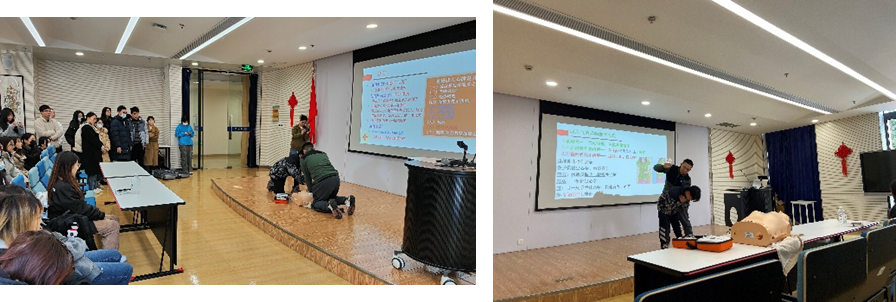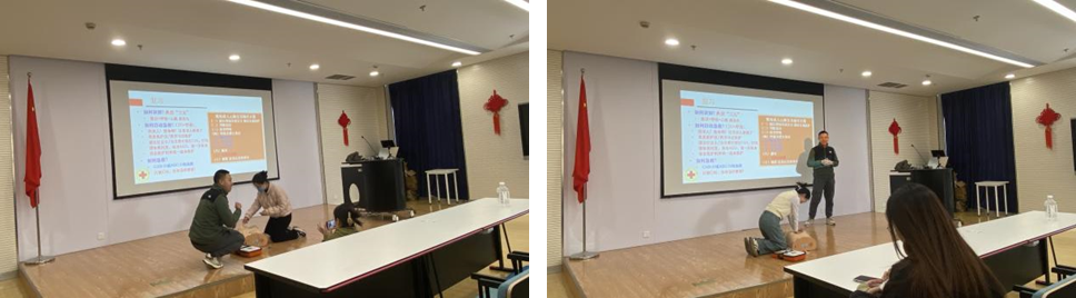 活动伊始,肿瘤医院2022级研究生第2党支部邀请了复旦大学红十字会急救队成员进行急救知识培训,详细介绍了心肺复苏术与海姆立克急救方法的相关内容知识。