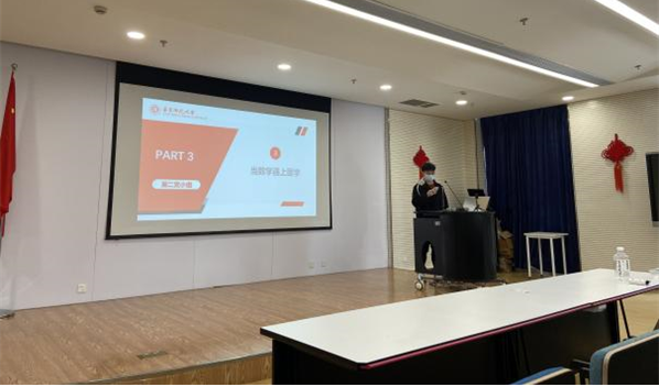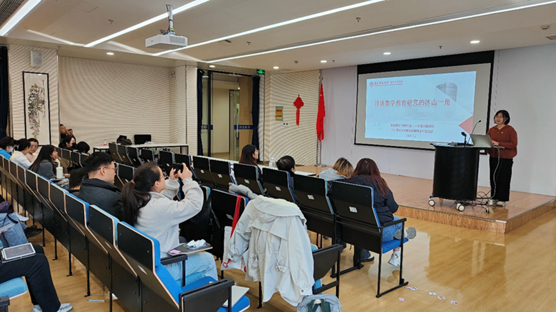 最后,数学教育博士生党支部书记戚艳兴以“浅谈数学教育研究的冰山一角”为主题介绍了数学教育研究关注的研究问题、常用的研究方法以及中国数学教育的地位,让同学们对于数学教育研究有了大致的了解。