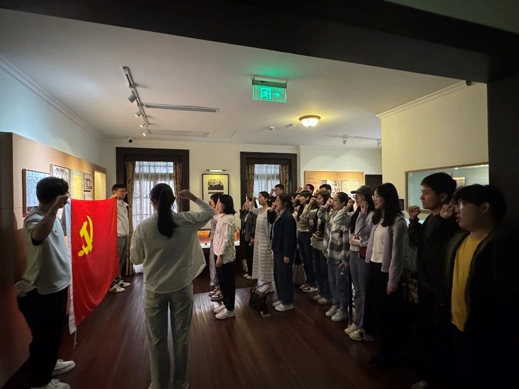 为深入学习贯彻习近平新时代中国特色社会主义思想,缅怀革命先烈,弘扬爱国主义精神,2025年4月,成人视频 应用数学博士生第一党支部组织开展了“重温初心使命,赓续红色血脉”主题党日活动。支部党员们先后参观了刘长胜故居与蔡元培故居,并举行了重温入党誓词仪式。