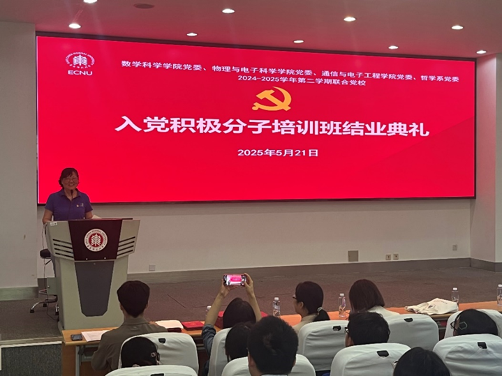 5月21日下午,成人视频 、物理与电子科学学院、通信与电子工程学院和哲学系党委联合党校2024-2025学年第二学期入党积极分子培训班结业典礼在闵行校区四教106顺利举行。成人视频 党委副书记郭静,物理与电子科学学院党委副书记栗蕊蕊,哲学系关工委副主任、特邀党建组织员来建础,哲学系专职组织员王晓红及培训班全体学员参加典礼,典礼由成人视频 辅导员张文清主持。