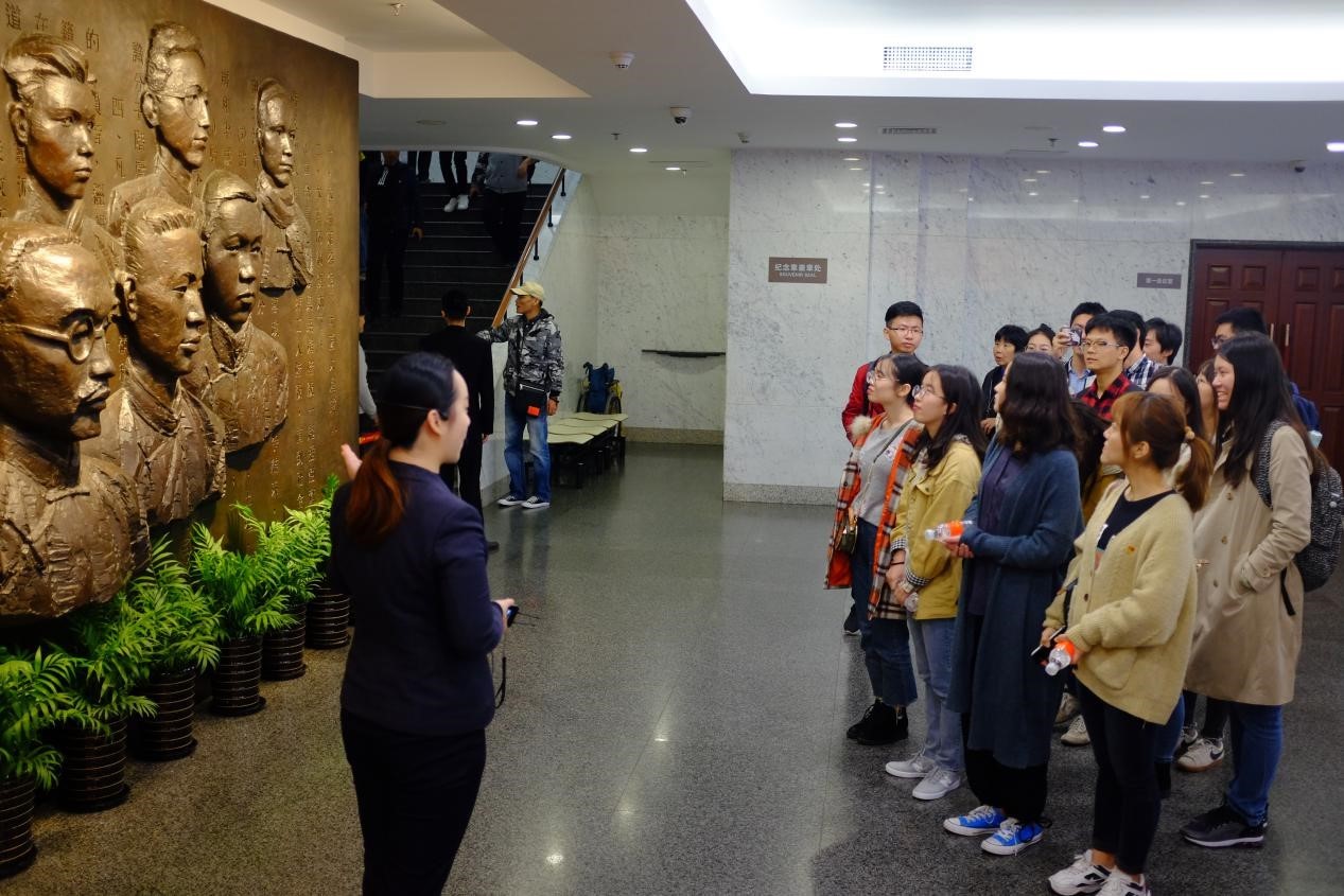 交流结束后,同学们在讲解员的带领下一同参观了中共一大会址展厅。同学们通过“起点”、“前赴后继救亡图存”、“风云际会相约建党”、“群英汇聚开天辟地”、“追梦”五个部分的学习,重温了中国共产党创建的光辉历程。