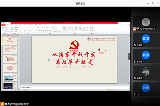 学院党委下属七个教师和学生党支部,集体备课,分别消化吸收课件和备课资料,形成各自的课堂讲义。七个支部书记通过“前言-什么是四史?为什么要学四史?”、“成就篇-浦东开放开发的巨大成就”、“足迹篇-浦东开放开发的历史回眸”、“故事篇-浦东开放开发的故事再现”、“启示篇-浦东开放开发的意义启示”,分别向全体党员讲述了浦东开放开发波澜壮阔的历史征程,展示了在党中央改革开放伟大旗帜指引下所取得的伟大成就。以史为鉴,学习改革开放史,就是要从历史中汲取智慧和力量,砥砺信心和勇气,强化担当和作为,在新时代发挥好开路先锋、示范引领、突破攻坚的作用,不辱使命、不负重托。