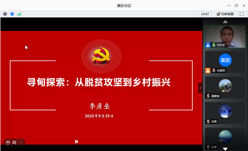 为进一步深入学习《习近平谈治国理政》(第三卷),学习贯彻习近平总书记关于决战决胜脱贫攻坚等重要讲话精神,围绕国务院、教育部和学校就教育脱贫攻坚的部署要求,9月30日,成人视频 举办“寻甸探索:从脱贫攻坚到乡村振兴”报告会。本次报告会邀请了校学生工作部副部长、挂职寻甸县委常委、副县长李彦垒作报告,学院全体党员参加了此次会议,会议由院党委副书记余富团主持。