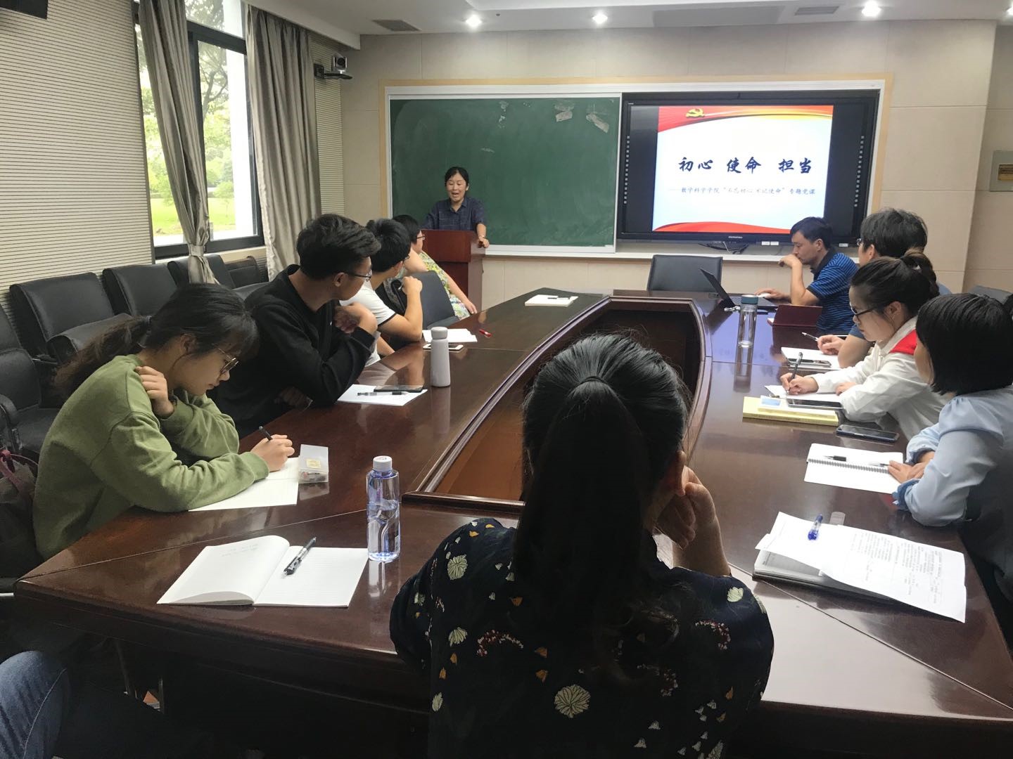 贾挚书记指出党中央在全党开展“不忘初心、牢记使命”主题教育,是中国共产党自我革命的需要,对夺取新时代中国特色社会主义伟大胜利、实现中华民族伟大复兴的中国梦,具有重大而深远的意义。她强调,上党课要对学生重点“讲知识”,讲清楚共产党的初心和使命是什么,坚守初心和使命对国家、民族的伟大复兴的重要性,引导学生树立正确的价值观,激发爱国爱党的热情。对教师重点“讲要求”,对照“初心”,在师德和业务水平上找差距,下功夫提高,抓落实。