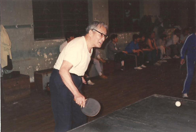 左图是家中留影;右图是打乒乓