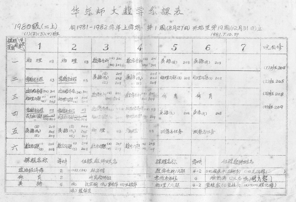 本文作者倪明1984年华东师大数学系毕业,留在系办公室工作,任本科教务员、研究生工作秘书、办公室副主任等职,1990年初离开数学系。之后在中学校长培训中心和学校出版社工作。 现为出版社教辅分社社长、编审。